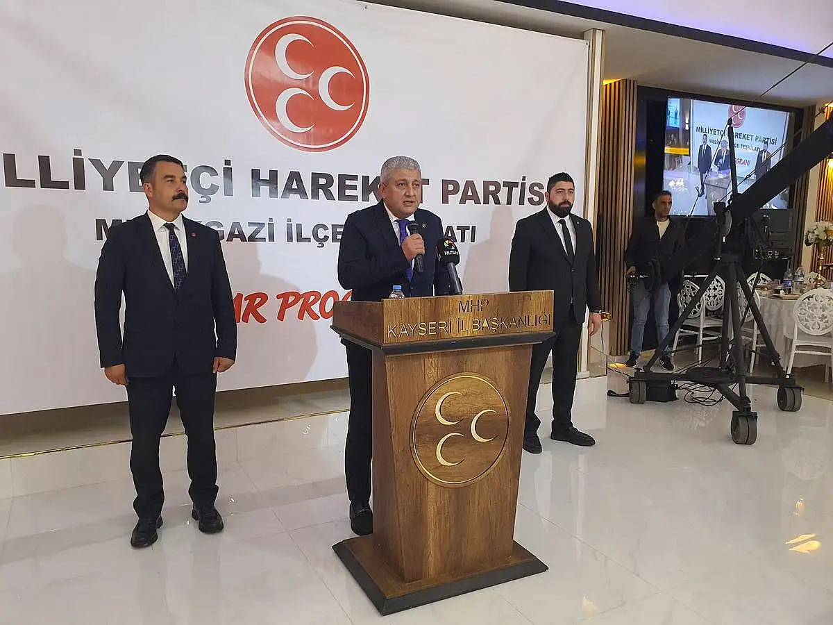 MHP Melikgazi İlçe Başkanlığı, bir düğün salonunda geniş katılımlı iftar programı gerçekleştirdi. “Birlik ve Beraberlik” temasının ön plana çıktığı programa MHP Kayseri İl Başkanı Enes Ertuğrul Kalın, MHP Melikgazi İlçe Başkanı Murat Titizbaş, MHP Kocasinan İlçe Başkanı Behsat Önder, Melikgazi Belediye Başkanı Mustafa Palancıoğlu, Özvatan Belediye Başkanı Halit Demir, Bünyan Belediye Başkanı Selahattin Metin, Pınarbaşı Belediyesi önceki dönem Başkanı Menduh Uzunluoğlu, Ülkü Ocakları Kayseri İl Başkanlığı yönetim kurulu üyeleri ve Milliyetçi-Ülkücü camiadan çok sayıda isim katıldı.