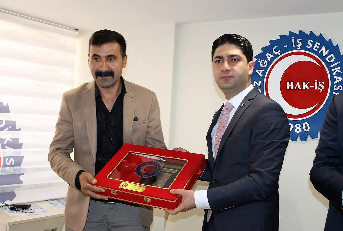 Yapılan toplantının sonunda Sendika yetkilileri Özdemir’e Kur’an-ı kerim ile Türk Bayrağı hediye etti.