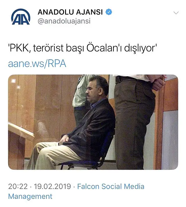 "Anadolu Ajansı " İmralı açlık grevine son verin çağrısı yaptı" diyerek haber yapmış. Anadolu Ajansı! İmralı kim? Oradakinin bir adı var, BEBEK KATİLİ APO. Ne yapmaya çalışıyorsun Anadolu Ajansı? Kime yarandın? Kime hizmet ettin? Anadolu Ajansı Başkanı derhal istifa etmelidir."