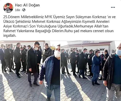 MHP Kocasinan İlçe Başkanı Hacı Ali Doğan da, Korkmaz’a baş sağlığı dileyerek sosyal medya hesabından şu paylaşımı yaptı:
