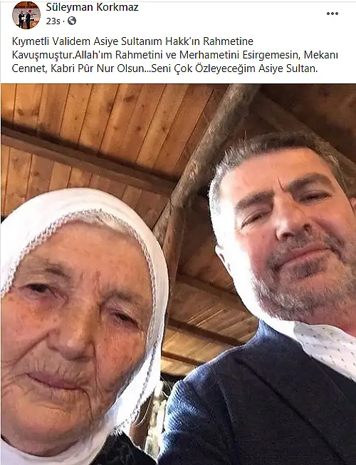 Süleyman Korkmaz, annesinin vefat haberini sosyal medya hesabından duyurdu. Korkmaz paylaşımında, "Kıymetli validem Asiye Sultan 'ım, Hak'kın rahmetine kavuşmuştur. Allah 'ım rahmetini ve merhametini esirgemesin. Mekânı cennet, kabri pür nur olsun. Seni çok özleyeceğim Asiye Sultan..." ifadelerini kullandı.
