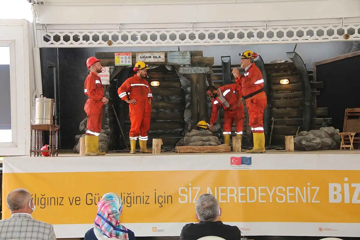 Ardından sahnelenen interaktif tiyatro oyunu ile maden çalışlarının aralarındaki iletişimi ve iş birliğini teşvik edilerek takım ruhu oluşturulmasının önemi vurgulandı.