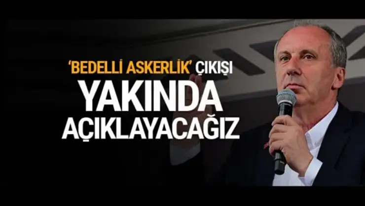 Cumhurbaşkanı adayı Muharrem İnce, 24 Haziran'da gerçekleşecek seçimlerden galip çıkarak cumhurbaşkanı olması durumunda askerlikle ilgili yeni bir model uygulayacaklarını, bu model sonrası bedelli askerliğe gerek kalmayacağını söyledi.
