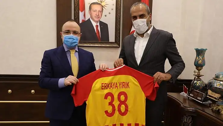 Hes Kablo Kayserispor Basın Sözcüsü Mustafa Tokgöz, bir süre Kayseri’de Kaymakamlık yapan ve ardından Elazığ Valisi olan Erkaya Yırık’ı makamında ziyaret etti. Elazığ Valisi Yırık'a Erkaya Yırık yazan 38 numaralı Kayserispor formasını hediye eden Mustafa Tokgöz, "Sayın valimiz Erkaya Yırık'a Kayseri'de görev yaptığı süreçte takımımıza verdiği desteklerden ötürü teşekkür ediyoruz ve Elazığ valiliği görevi sürecinde başarılar diliyoruz. Kayserispor formasını, Kayserispor sevgisini de yurdumuzun her köşesine yayabilirsek ne mutlu bize" dedi.