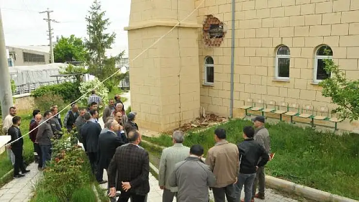 Dün, akşam ezanına 7 dakika kala üzerine yıldırım düşen camide hasar meydana geldi. Yıldırımın düştüğü sırada cami içinde ve bahçesinde kimsenin olmaması olası faciayı önledi.