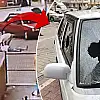 ELİNE ALDIĞI DEMİR SOPAYLA ARABANIN CAMLARINI İNDİRDİ