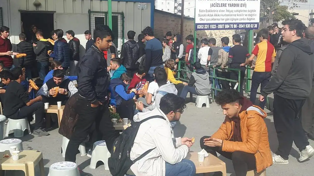 Kayseri Darül’aceze Vakfı’ndan örnek davranış. Vakıf, gariban vatandaşlara ve öğrencilere ücretsiz yemek imkanı sağlıyor. Taceddin Veli Mahallesinde kurulan yardım çadırı ile öğrencilere yemek dağıtımı yapılıyor.