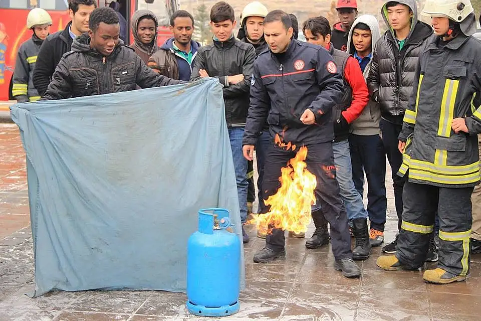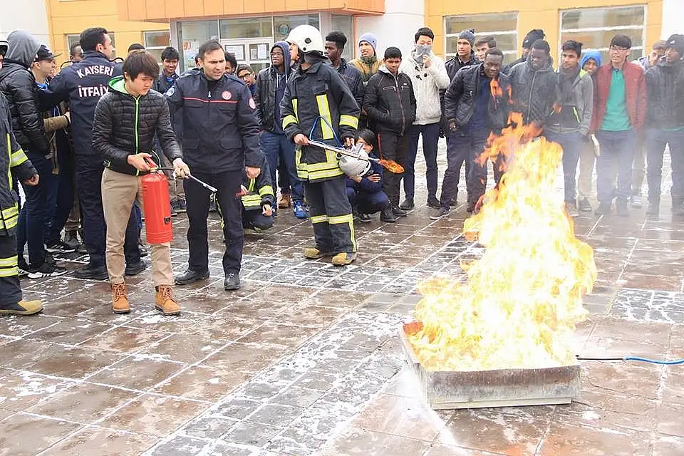 Kayseri Büyükşehir Belediyesi İtfaiye Daire Başkanlığı tarafından Uluslararası Şehit Ömer Halisdemir İmam Hatip Lisesi'nde verilen yangın güvenliği eğitiminin ikincisi gerçekleştirildi. 56 ülkeden 430 öğrencinin eğitim gördüğü Şehit Ömer Halisdemir Anadolu İmam Hatip Lisesi'nde öğrencilere, itfaiye ekipleri tarafından yanma ve yanma bilgisi ile yangın söndürme tüpünün nasıl kullanılacağı konusunda bilgiler verildi.