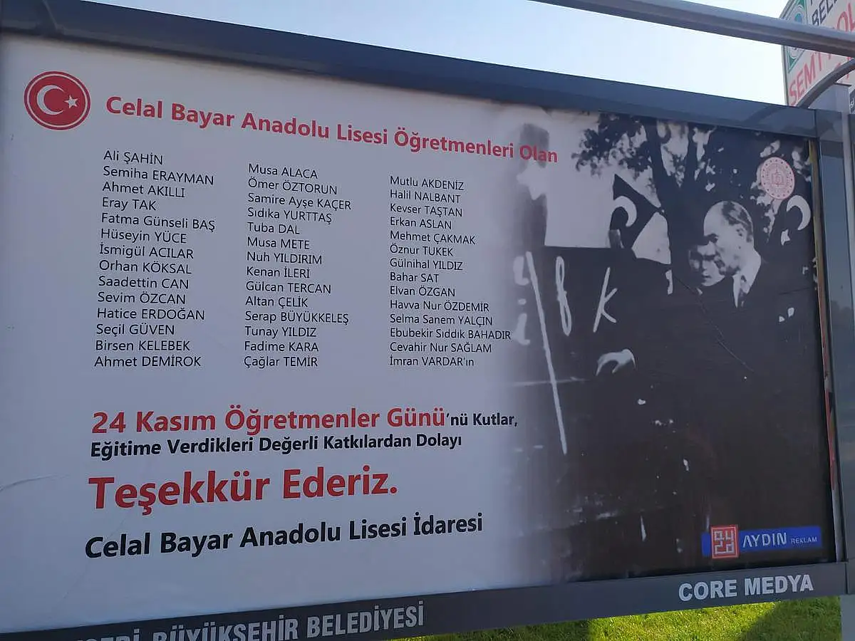 Kayseri Celal Bayar Anadolu Lisesi Okul İdaresi, 24 Kasım Öğretmenler Günü’nde okuldaki öğretmenlerine anlamlı bir hediye hazırladı. Okul Müdürü Mehmet Metin’in öncülüğünde hazırlanan hediyede okulda görev yapan öğretmenlerin isimlerinin yazılı olduğu afiş okul yolundaki billboardlara asıldı. İsimlerini billboardda gören öğretmenler hem şaşırdı, hem de bu anlamlı hediye için okul yönetimine teşekkür etti.