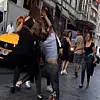 Beyoğlu'ndaki İstiklal Caddesi'nde kalabalık iki grup henüz bilinmeyen bir sebeple dakikalarca kavga etti.Birbirlerini yerlerde sürükleyen kadınlar ve kavgaya karışan erkekler ortalığı savaş alanına çevirdi.
