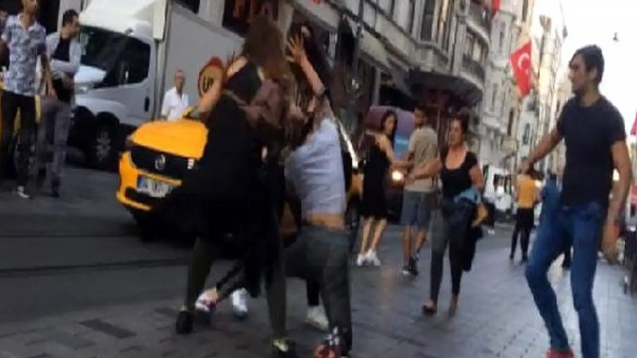 Beyoğlu'ndaki İstiklal Caddesi'nde kalabalık iki grup henüz bilinmeyen bir sebeple dakikalarca kavga etti. Birbirlerini yerlerde sürükleyen kadınlar ve kavgaya karışan erkekler ortalığı savaş alanına çevirdi.