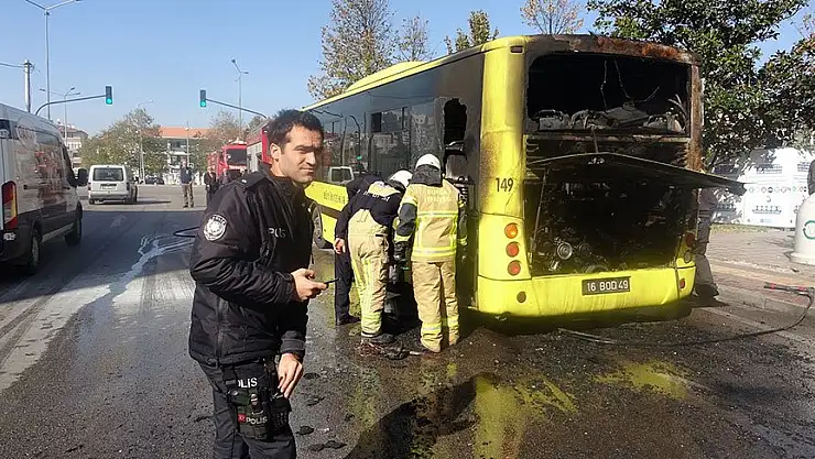 BURSA Büyükşehir Belediyesi'ne ait yolcu otobüsü, hareket halindeyken bilinmeyen bir nedenden dolayı yandı.