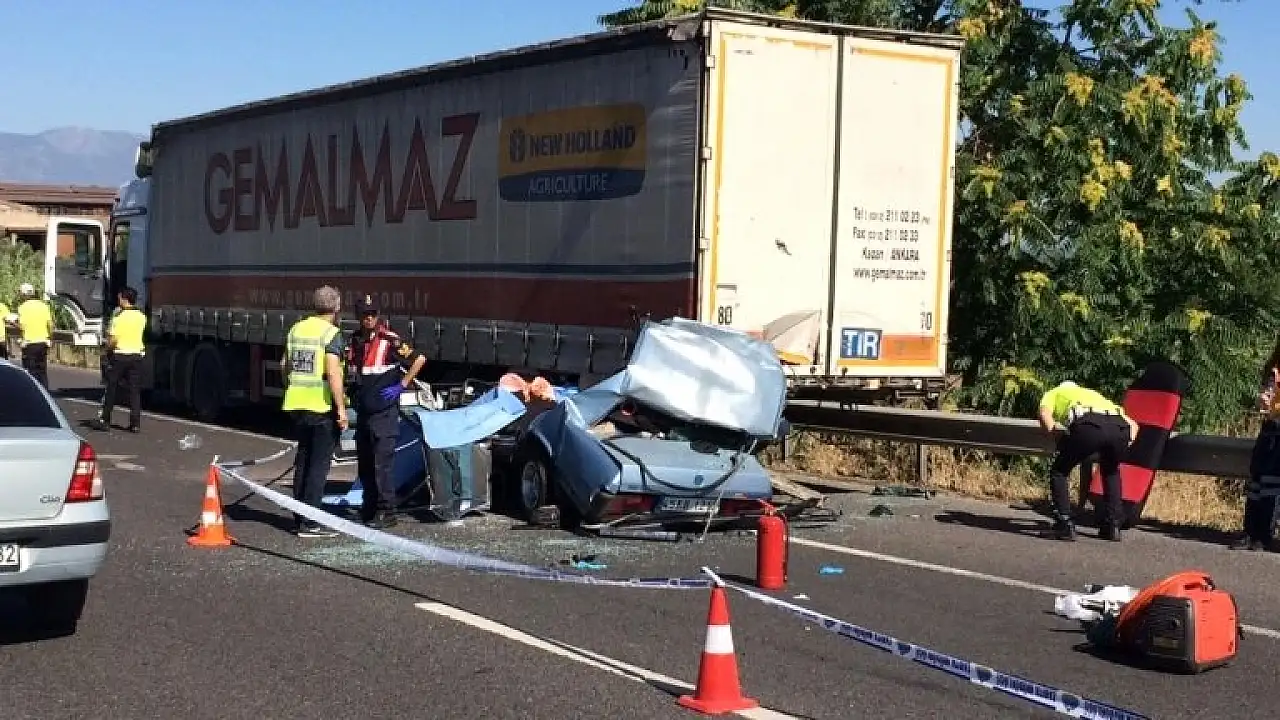 Manisa'nın Turgutlu ilçesine bağlı Avşar Mahallesi İzmir-Ankara yolunda bir otomobilin TIR'a arkadan çarpması sonucu ilk belirlemelere göre 3 kişi öldü.
