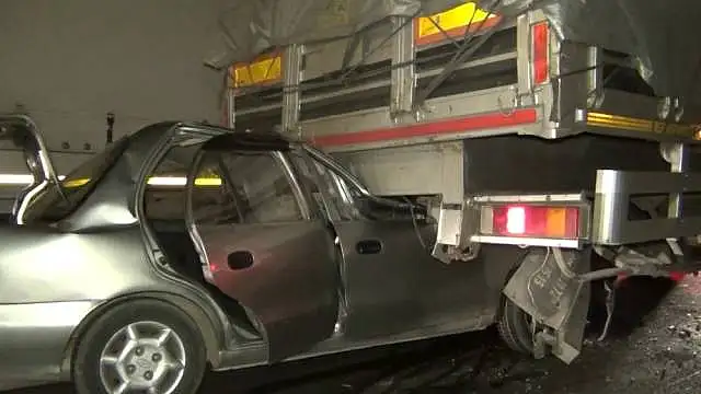 Kırıkkale'de hızını alamayan otomobil, arkadan çarptığı TIR'ın altına girdi.Kazada 1'i ağır 3 kişi yaralandı.