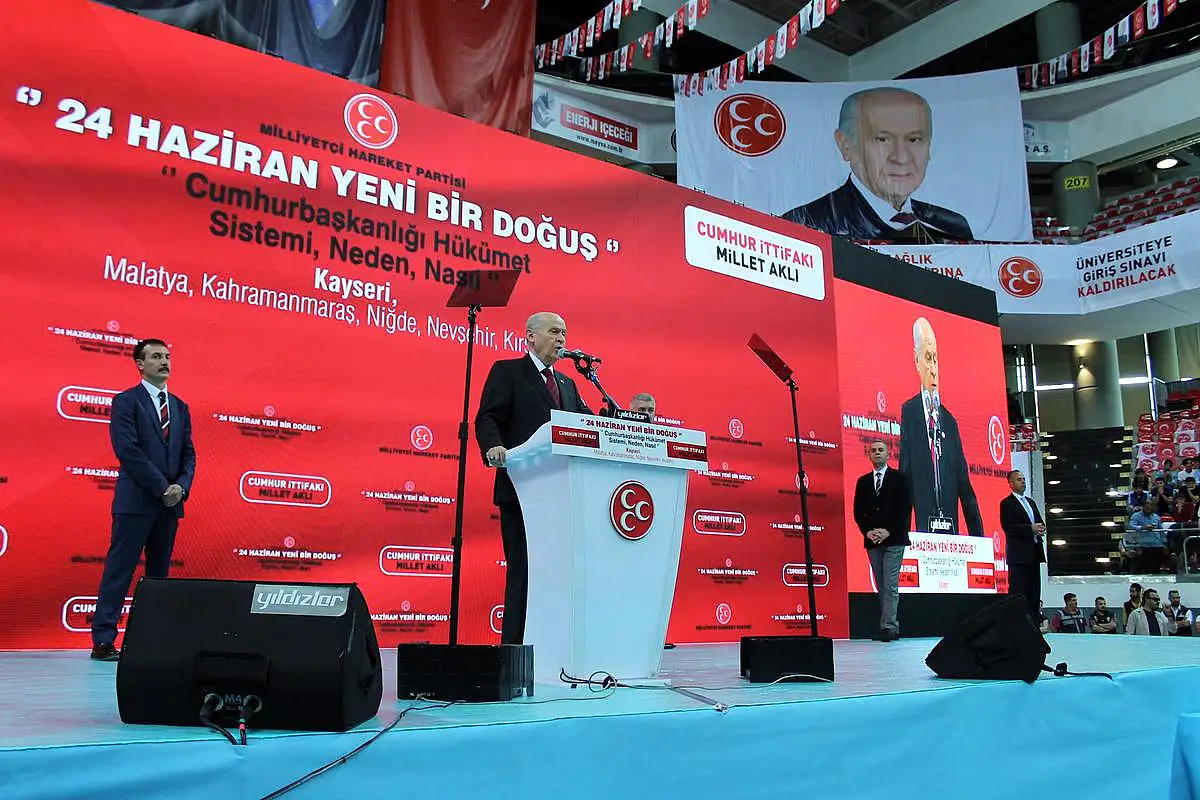 Milliyetçi Hareket Partisi Genel Başkanı Devlet Bahçeli, 7 Haziran’da Kayseri Kadir Has Kongre Merkezi Spor Salonu'nda düzenlenen '24 Haziran Yeni Bir Doğuş Cumhurbaşkanlığı Hükümet Sistemi, Neden, Nasıl' temalı Kayseri Bölge Toplantısı'na katılmıştı. Bahçeli konuşmasının sonunda sert sözlerle Ak Parti milletvekillerini uyararak “Kendinize dikkat edin, fitneye düşmeyin. MHP üzerinden oyun oynamaya kalkmayın” şeklinde açıklamada bulunmuştu.
