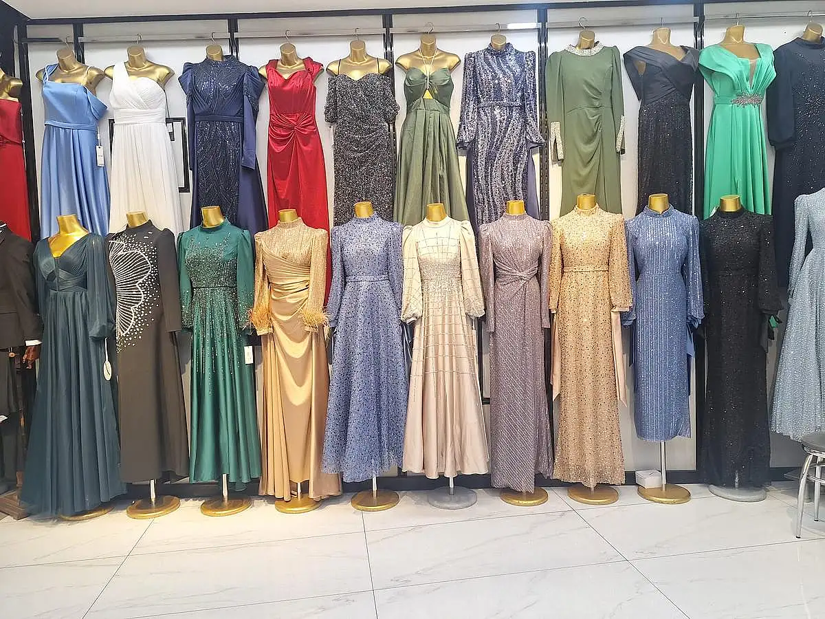 Muğaloğlu Mağaza Müdürü Mustafa Ay, 2025 yılı trend renginin su yeşili ve gold olacağını belirtirken elbise fiyat aralıklarının ise 2 bin ila 8 bin TL arasında değiştiğini de sözlerine ekledi.