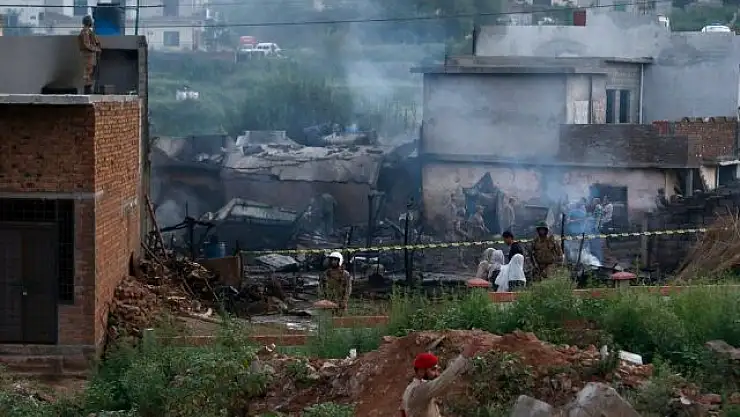 [Pakistan'da askeri uçak evlerin üzerine düştü: 17 ölü, 12 yaralı]
