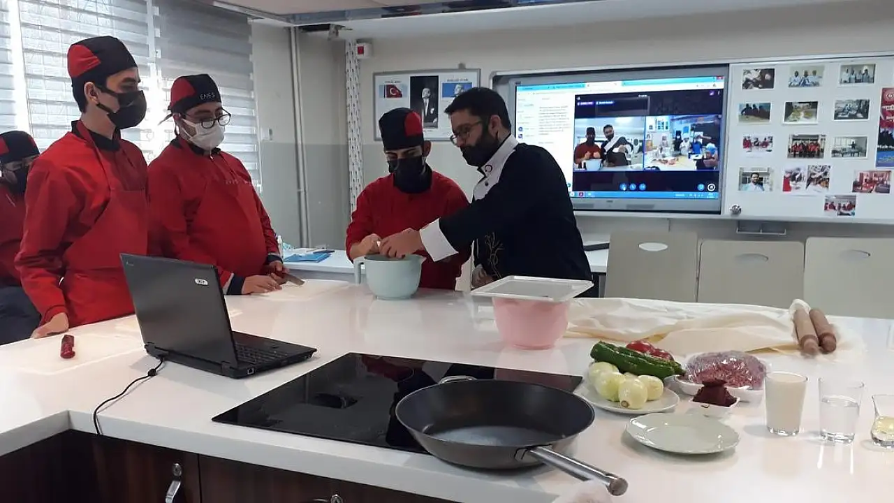 Kayseri Melikgazi İstiklal Özel Eğitim Meslek Okulu Yiyecek İçecek Atölyesi, e-Twinnig projeleri kapsamında Fransa da " École Maternelle 58 rue Archereau 75019 PARIS" okulu ile kuruculuğunu üstlendiği ‘Farklı il Farklı Ülke Yemek Tarifleri’ konulu proje kapsamında çevrimiçi olarak eş zamanlı Kayseri Yağlaması yaptı.