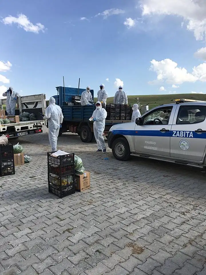 PINARBAŞI BELEDİYESİ'NDEN KARANTİNADAKİ MAHALLEYE ERZAK YARDIMI