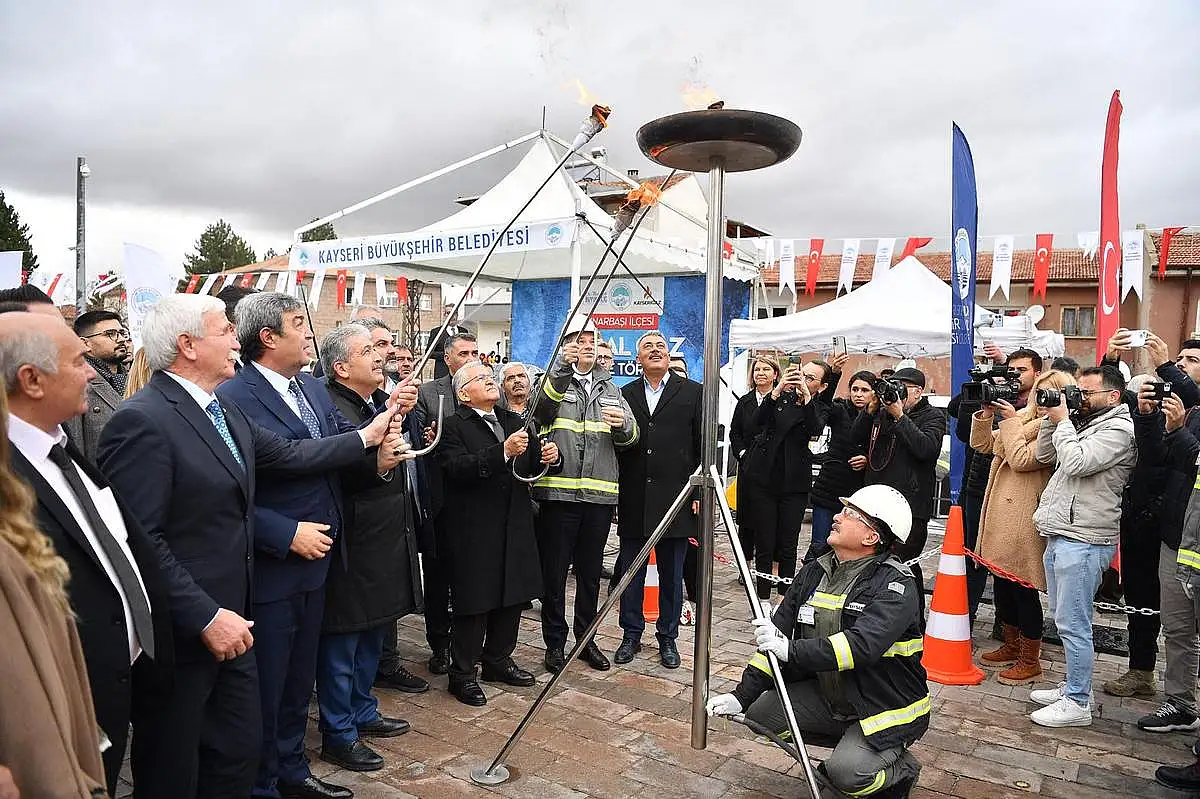Daha sonra Başkan Büyükkılıç, tören protokolü ile birlikte ilçeye ulaşan gazın ilk ateşi olan meşaleyi yaktı.