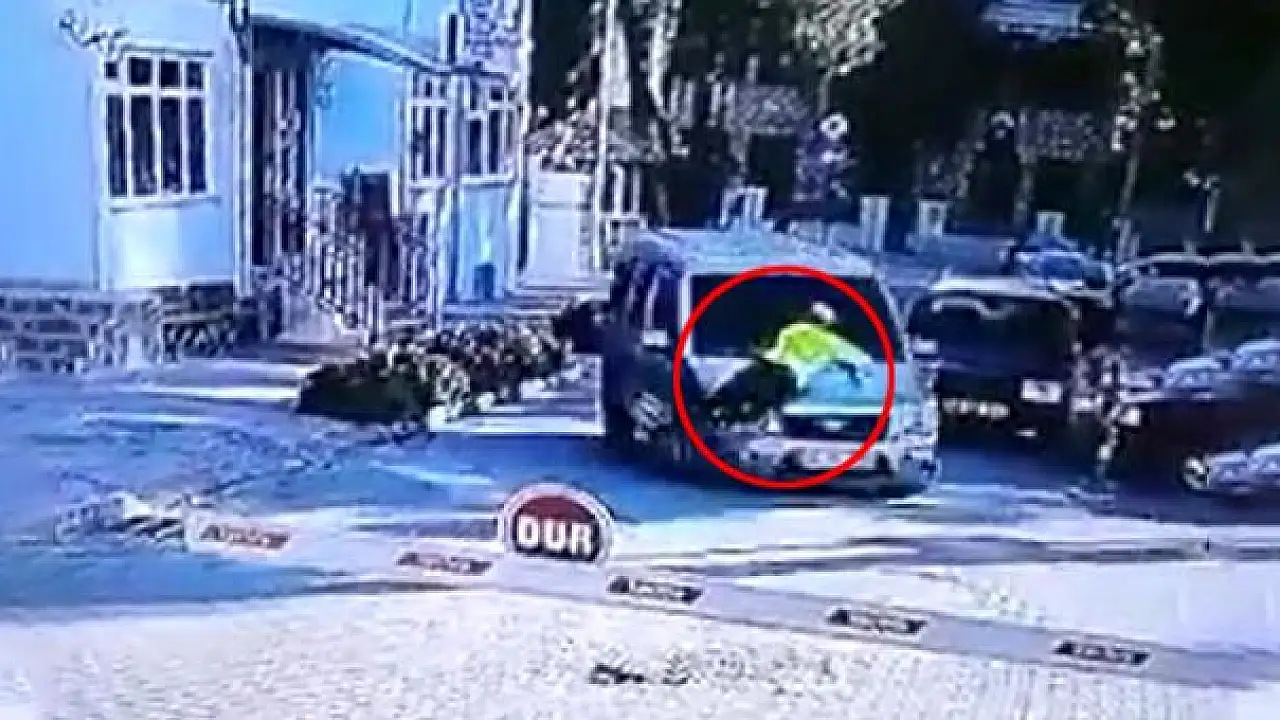 Öte yandan hastanedeki tedavisinin ardından taburcu olan Muzaffer Ertürk'ün aracın kaputunun üzerinde 2 kilometre yol gitme anı, güvenlik kamerasına saniye saniye kaydedildi. Ertürk'ün görüntülerde viraja hızlı giren kamyonetin kaputunu bırakmaması dikkat çekiyor.