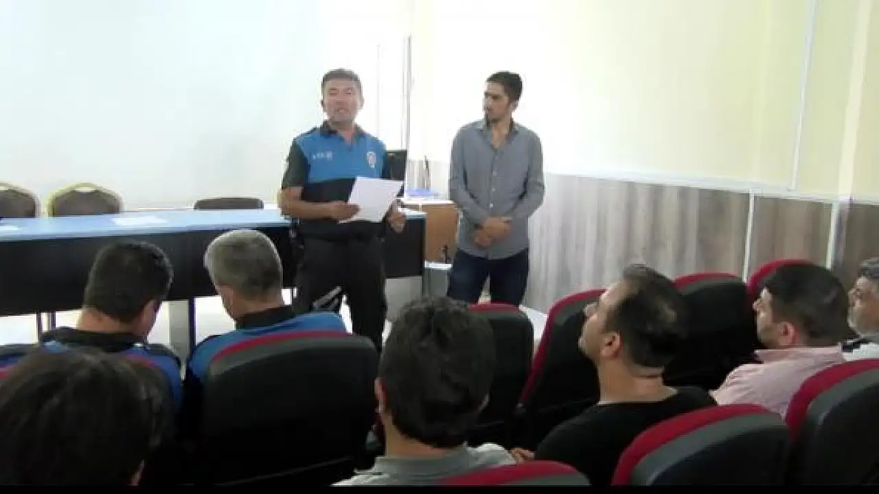 KAYSERİ'de Toplum Destekli Polisler, kentte faaliyet gösteren Suriyeli esnafa, hırsızlık ve dolandırıcılık olaylarına karşı seminer verdi. Seminerde esnafa iş yerlerine güvenlik kamerası takmaları tavsiyesinde bulunulurken, 'Çocuklarınıza sahip çıkın' uyarısı da yapıldı.