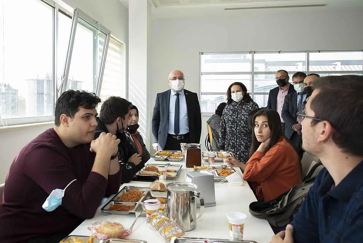 Öğrencilere yemeklerden memnuniyetini soran Rektör Karamustafa, Kayseri Üniversitesi olarak öğrenci odaklı yaklaşımla öğrenci memnuniyetini sürekli yüksek tutmaya çalıştıklarını söyledi.