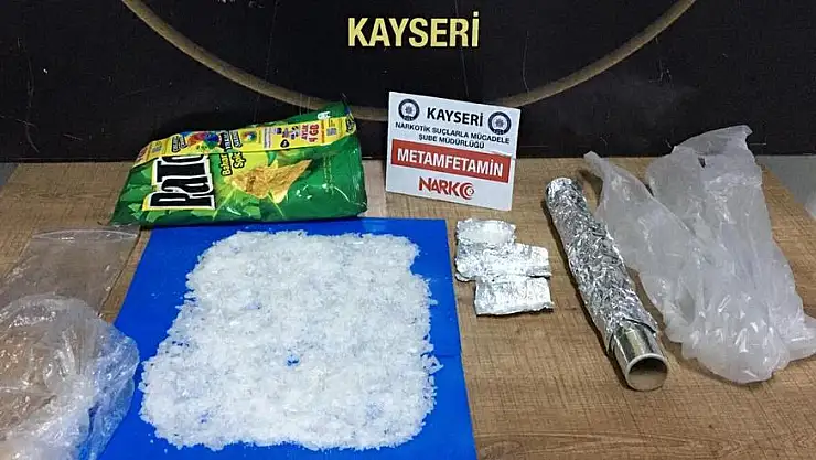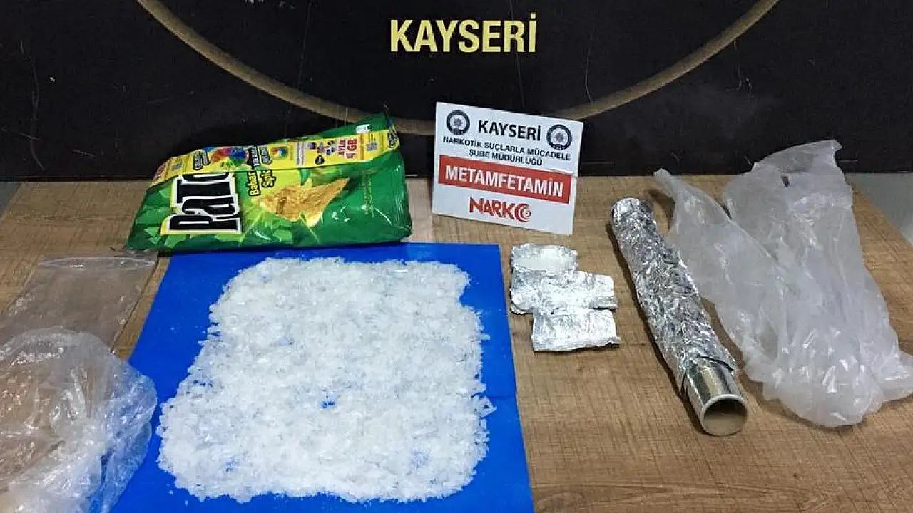 09.08.2020 günü ilimiz genelinde Narkotik şube müdürlüğü ekiplerince sokak satıcılarına yönelik yapılan çalışmalarda H.E ve Ş.Y isimli şahısların il dışından yüklü miktarda malzeme getirecekleri ve getirdikleri malzameyi ilimiz genelinde kullanıcı tabir edilen şahıslara haksız kazanç elde ederek satacakları bilgileri üzerine yapılan çalışmalarda H.E ve Ş.Y ismli şahısların ilimiz Talas ilçesi Mevlana mahallesinde bulunan residansta il dışından gelen şahıslar ile buluştukları tespit edilmesi üzerine bahse konu adrese Narkotik Şube müdürlüğü ekiplerince operasyon düzenlenmiş, şahıslar uyuşturucu madde ticaretinin gerçekleştirirken suç üstü yapılarak yakalanmış ve yapılan aramalarda 5 parça halinde 202 Gram metamfetamin maddesi ve uyuşturucu paketlemek için kullanılan rulo folyo ele geçirilmiş olup; Yakalanan H.E, Ş.Y, G.Ç ve M.G isimli 4 şahıs uyuşturucu madde ticareti yapmak suçundan gözaltına alınarak işlemleri tamamlandıktan sonra mevcutlu olarak adli makamlara sevk edilecektir.