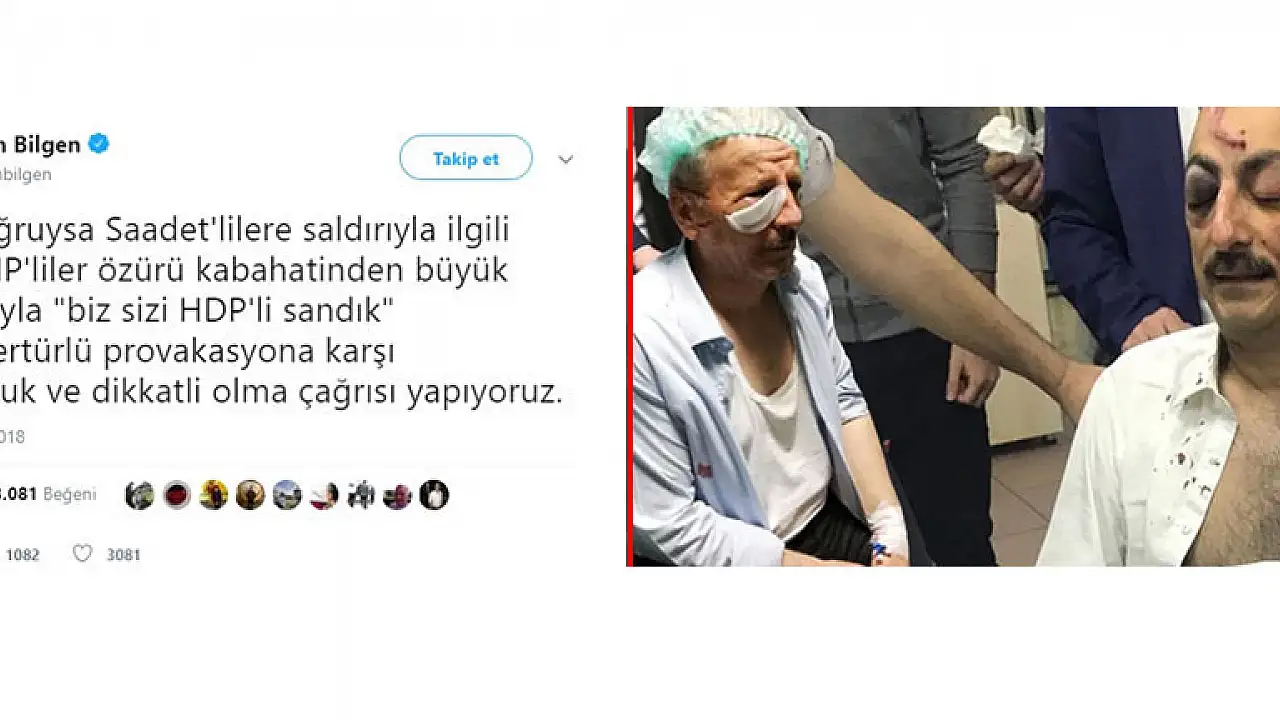 Ankara'da aralarında milletvekilinin de bulunduğu MHP'li grup ile, seçim için bayraklama çalışması yapan Saadet Partisi milletvekili adayı ve üyeleri arasında çıkan kavgada 7 kişi yaralanmıştı. HDP Sözcüsü Ayhan Bilgen "İddia doğruysa Saadet'lilere saldırıyla ilgili bazı MHP'liler özrü kabahatinden büyük açıklamayla 'biz sizi HDP'li sandık' demiş. Her türlü provokasyona karşı sorumluluk ve dikkatli olma çağrısı yapıyoruz" paylaşımında bulundu.