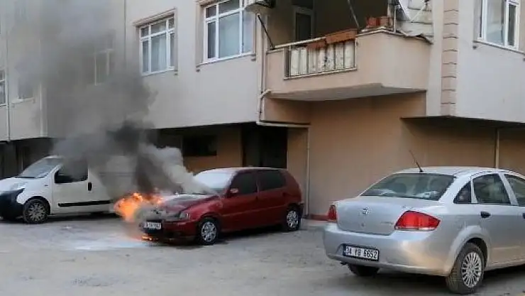 SAHİBİNİN ÇALIŞTIRAMADIĞI OTOMOBİL ALEV ALEV YANDI