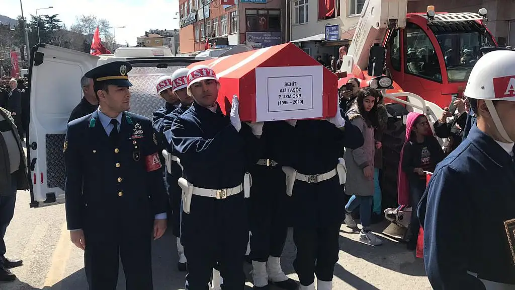 İdlib'te düzenlenen hava saldırısında şehit olan Kayserili Piyade Uzman Onbaşı Ali Taşöz'ün cenazesi Develi Devlet Hastanesi morgundan alındı. Babaevinde helallik alınmasının ardından Çarşı Camisi'ne getirildi. Burada kılınan cenaze namazının ardından Develi Şehir Mezarlığı'na defnedildi.