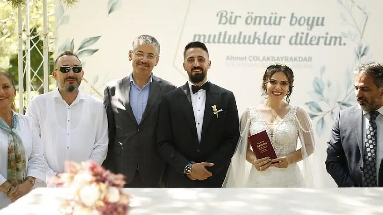 Çiftin nikah şahitliğini AK Parti Kayseri İl Başkanı Şaban Çopuroğlu, Kayseri Gazeteciler Cemiyeti Başkanı Metin Kösedağ yaptı. Evlilik cüzdanını geline teslim eden Başkan Çopuroğlu çifte mutluluklar diledi.