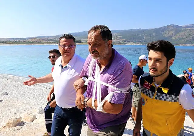 Öte yandan dalış denemesini bottan takip eden bir gazeteci suya düştü. Derya Can'ın dalış ekipleri ve UMKE ekiplerince sudan çıkarılan gazeteci, sağlık ekiplerince kıyıya getirildi. Omuzundan yaralandığı öğrenilen gazeteci, Yeşilova Devlet Hastanesine kaldırıldı.