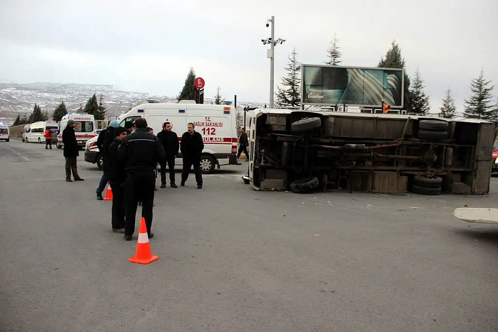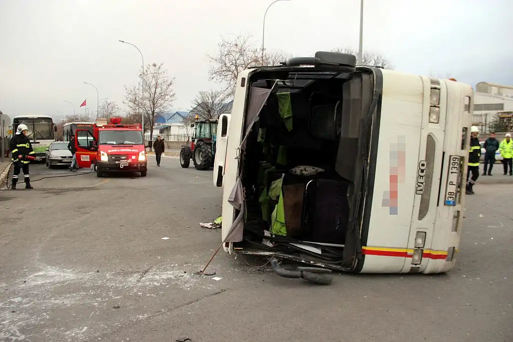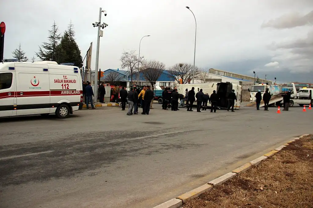 KAYSERİ'DE İŞÇİLERİ TAŞIYAN İKİ SERVİS MİDİBÜSÜ ÇARPIŞTI, KAZADA BİR MİDİBÜS DEVRİLİRKEN 22 KİŞİ YARALANDI.[/caption]