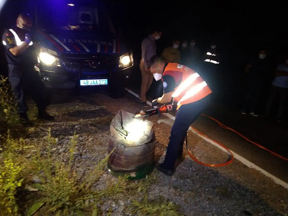 Muğla’da 16 Temmuz’dan bu yana kendisinden haber alınamayan üniversite öğrencisi 27 yaşındaki Pınar Gültekin’in cansız bedeni ormanlık alanda üzerine beton dökülmüş olan bu bidonun içerisinden çıkarıldı. Jandarma nezaretindeki itfaiye ekipleri talihsiz kızın cesedini gece özel aparatlarla bidonun içerisinden çıkardı.