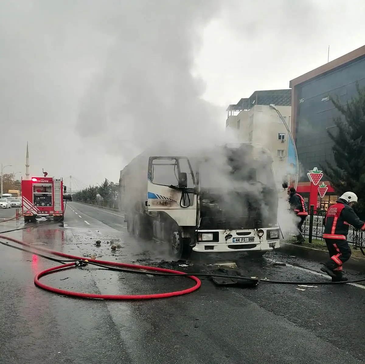 Malatya’da seyir halindeki bir kamyonda henüz bilinmeden bir nedenle yangın çıktı. Sürücünün yara almadığı olayda kamyon alev topuna döndü.