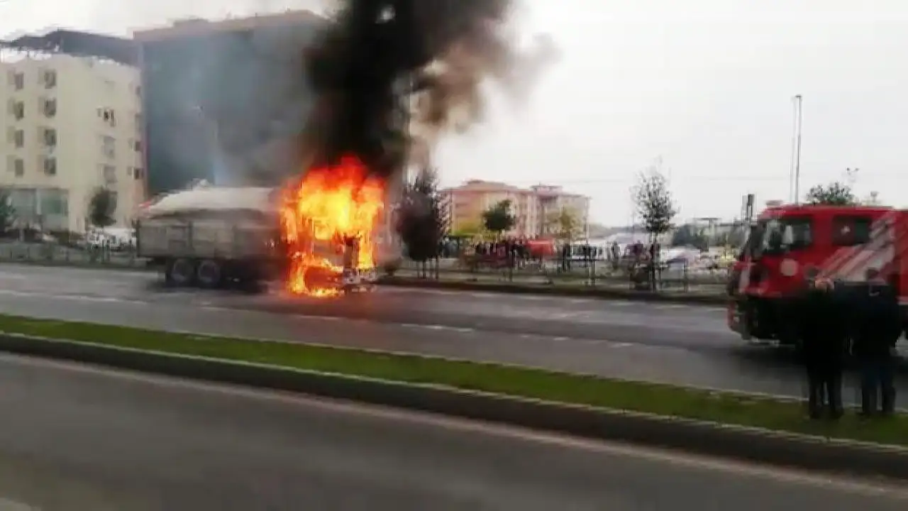 Yeşilyurt ilçesi Karakavak Mahallesi'nden geçen Malatya-Kayseri karayolunda ilerleyen bir kamyonda henüz bilinmeyen bir nedenden dolayı yangın çıktı. Sürücü durumu fark ederek hemen aracı durdurup aşağı indi. Alevler kısa sürede kamyonu sararken, çevredeki vatandaşlar da korku dolu gözlerle olan biteni izledi. Kısa sürede olay yerine gelen itfaiye ekipleri yanan araca müdahale ederken, kamyonun ön kısmı tamamen küle döndü.