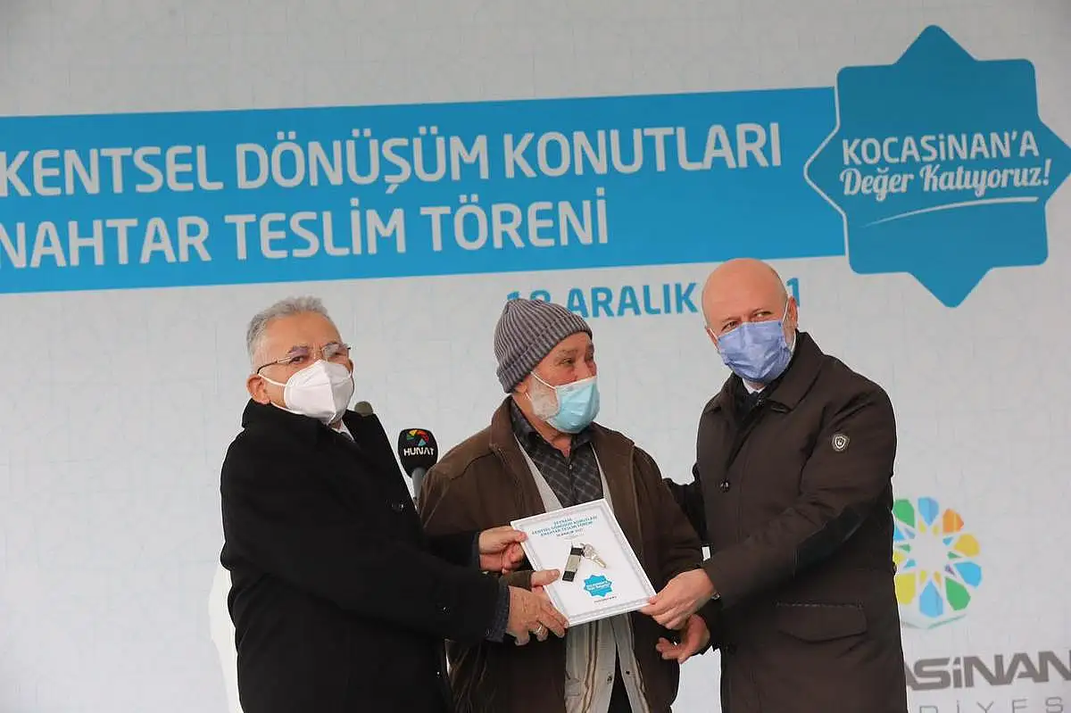 Kocasinan Belediyesi'nin yürüttüğü Seyrani Kentsel Dönüşüm Konutlarının Anahtar Teslim Töreni, AK Parti Genel Başkan Yardımcısı Mehmet Özhaseki'nin katılımı ile gerçekleştirildi.Hayalleri gerçekleştirerek, mutlu ve huzurlu yuvalar inşa eden Kocasinan Bele