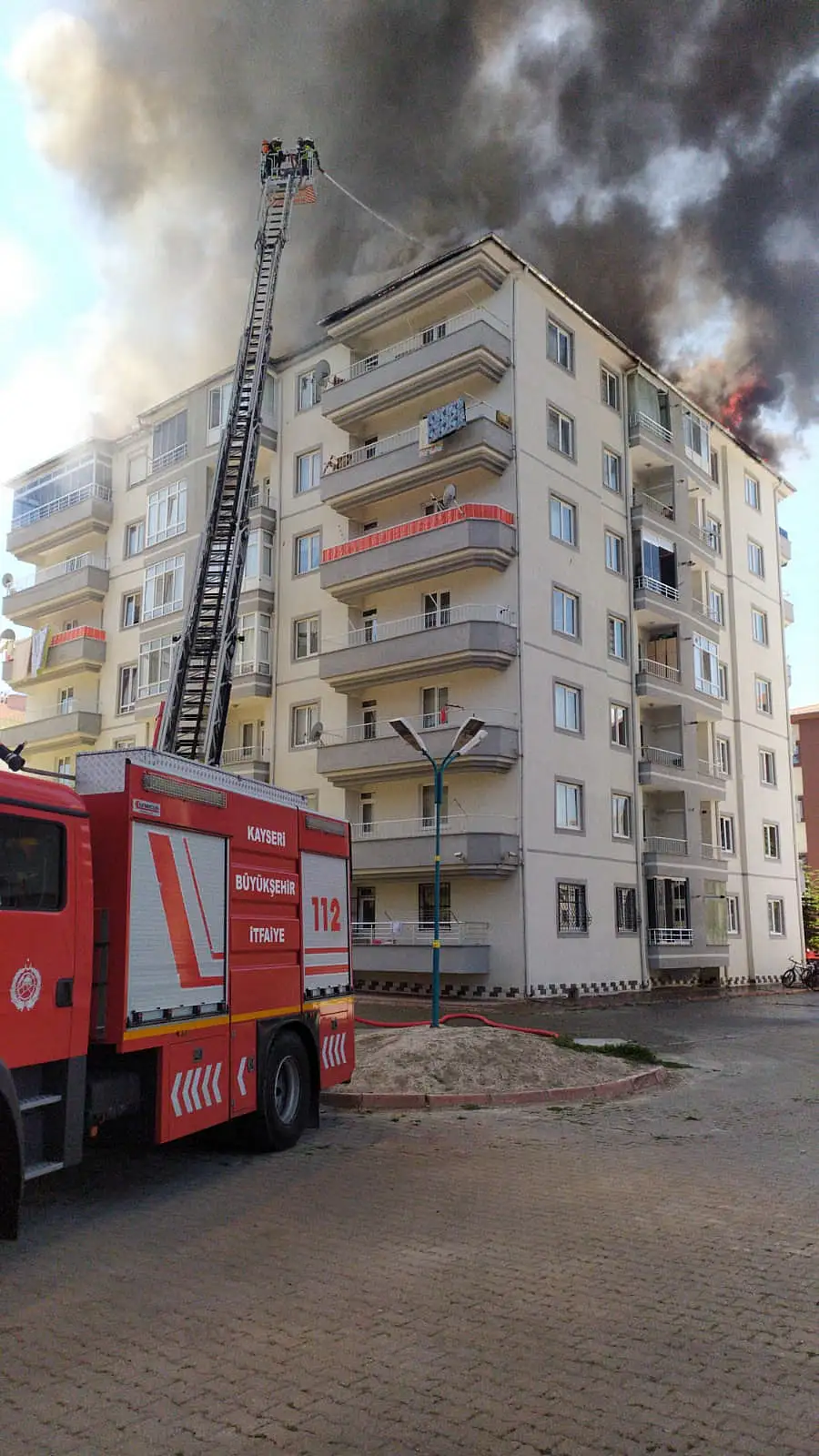 Kayseri’nin Kocasinan İlçesi’ne bağlı Zümrüt Mahallesi’nde 7 katlı bir binanın çatısından belirlenemeyen bir sebepten dolayı yangın çıktı.