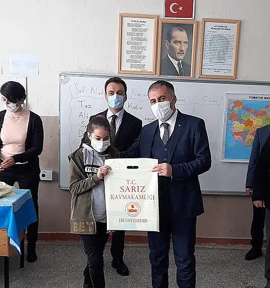 Sarız İlçe Milli Eğitim Müdürlüğü tarafından öğrencilere teslim edilen kitapların dağıtımını Sarız Kaymakamı İhsan Maskar, Belediye Başkanı Baki Bayrak , İlçe Milli Eğitim Müdürü Hasan Tahtaoğlu tarafından yapıldı.