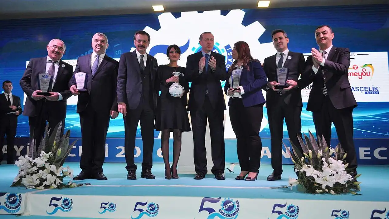 Cumhurbaşkanı Recep Tayyip Erdoğan, Kayseri ve Civarı Elektrik Şirketi adına Mustafa Çelik, BRN Yatak Baza Yönetim Kurulu Başkanı Berna İlter’e, Dener Makina adına Mustafa Dener, Turkuaz Seramik adına Rabia Aslaner Özkaya’ya plaketlerini verdi.