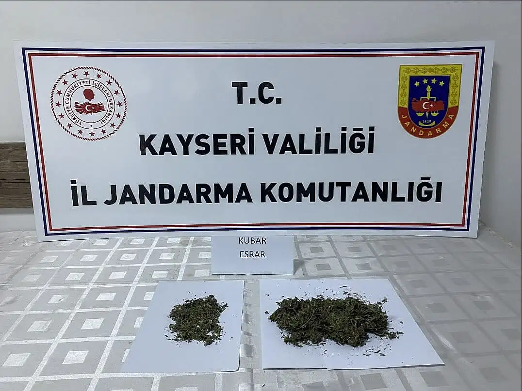 Kayseri İl Jandarma Komutanlığı İstihbarat Şube Müdürlüğü ve KOM Şube Müdürlüğü ekipleri tarafından uyuşturucuyla mücadeleye yönelik yapılan çalışmalarda; F.M’nin İstanbul ilinden temin ettiği uyuşturucu maddeyi Kayseri iline getirdiği ve Gülük Mahallesi'nde bir otelde konakladığı yönünde bilgiler edilerek kaldığı otel odasına baskın düzenlendi. FM’nin ayakkabısının içerisinde 1005 gram Metamfetamin maddesi ele geçirildi. Öte yandan Yenişehir Mahallesinde M.G’nin ikamet ettiği ev ve eklentilerinde adli makamlardan alınan arama kararına istinaden yapılan aramada 260 gram kubar esrar ele geçirildi.