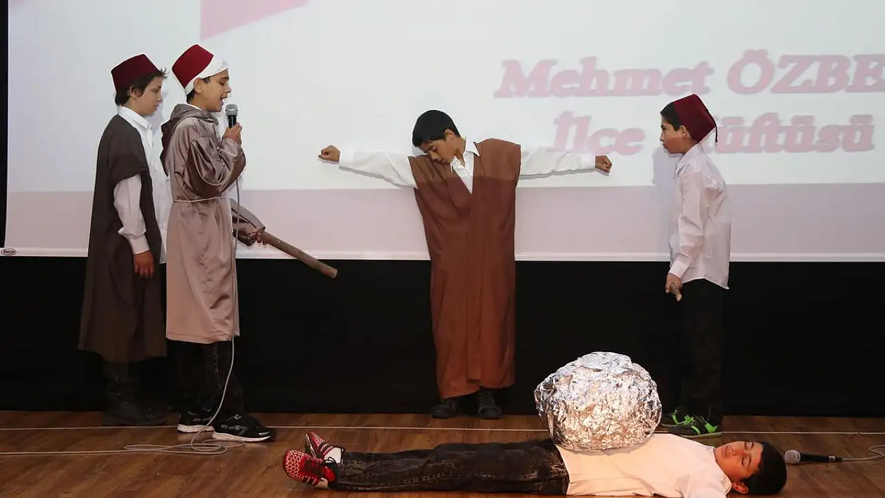 İlçede eğitim gören Suriyeli öğrencilerin Türkçe ve Arapça şiirler okuyup ezgiler söylediği programda, Suriye'de bombalı saldırıdan insanların kurtarılmasının anlatıldığı slayt gösterisi de sunuldu.