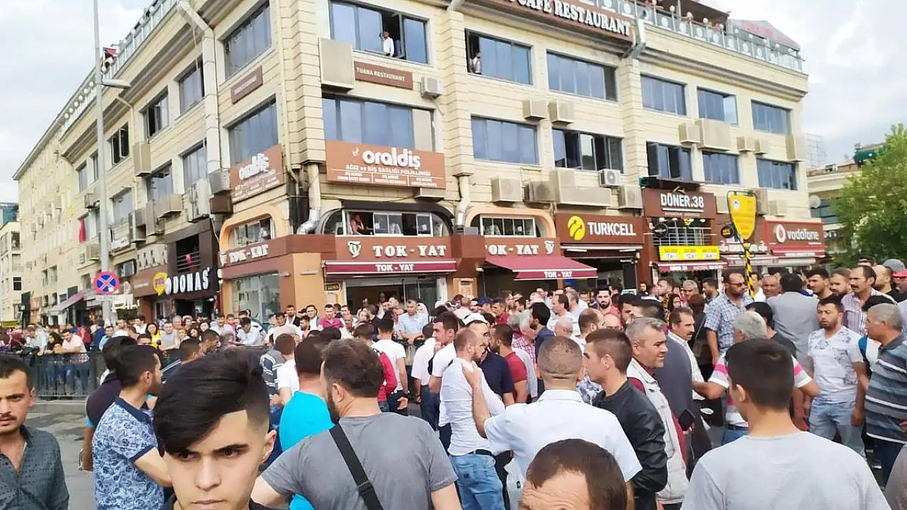 Meydanda gıyabi cenaze namazı kılmak isteyen bir grup suriyeli slogan atmak isteyince vatandaşın tepkisini çekti.