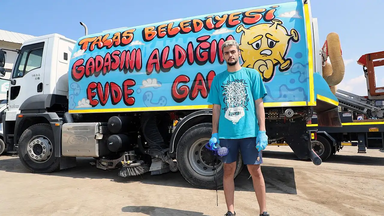 Talas Belediyesi, koronavirüsle mücadele çalışmalarına farklı bir boyut kazandırdı.Belediyenin dört aracına yapılan grafiti çalışmasıyla ilçe halkına Kayseri şivesiyle 'Gadasını aldığım evde gal' çağrısı yapıldı.