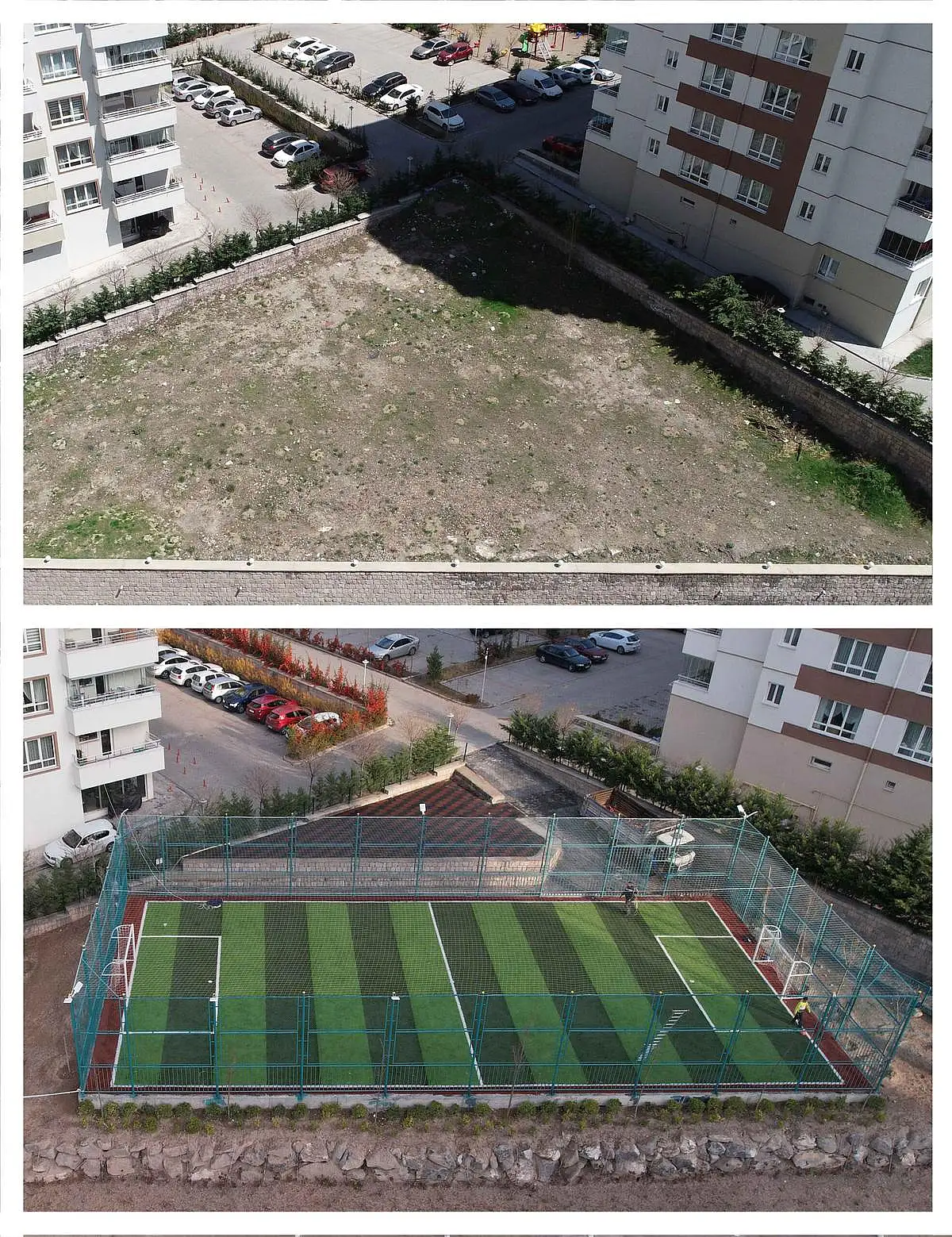 Bu kapsamda Mevlana Mahallesinde kullanılmayan bin 500 metrekare büyüklüğündeki boş alan, ince dokunuşlar yapılarak çevre düzenlemesiyle birlikte futbol sahasına dönüştürüldü.