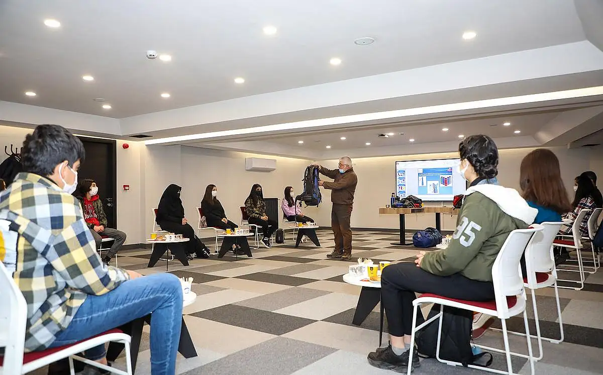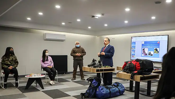 Talas Atatürk Mesleki ve Teknik Anadolu Lisesi öğrencilerinin katılımıyla Kültür Merkezi ve 7/24 Kütüphanede gerçekleştirilen eğitim programında doğa yürüyüşü ve dağcılıkla ilgili teorik bilgiler anlatıldı. Her hafta farklı bir okul ile sürecek eğitim programı 3 gün teorik, 2 gün pratik eğitim şeklinde gerçekleştirilecek.