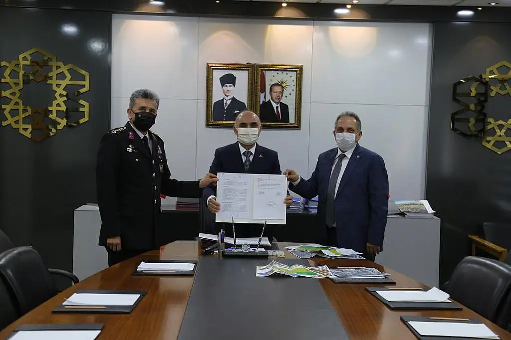 Talas ilçemizde bulunan İl Jandarma Komutanlığımıza ait 100 bin m² alana yapılacak olan Millet Bahçesi ve 3 okulun yapımına ilişkin protokol, Valiliğimizde düzenlenen tören ile imzalandı.