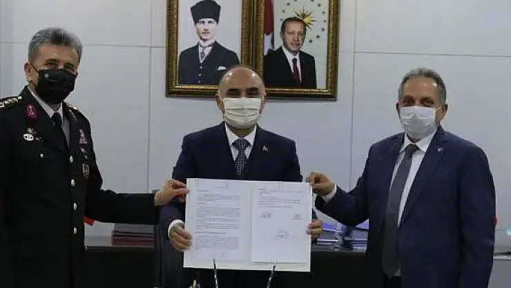 Valilik Toplantı Salonunda düzenlenen protokol imza törenine, Valimiz Şehmus Günaydın’ın yanı sıra İl Jandarma Komutanı Albay Nadir Çelik, Talas Belediye Başkanı Mustafa Yalçın katıldı.