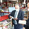 Başkan Yalçın denetimler sırasında girdiği bir kitapçıda Kaymakam Dönmez’e bir de kitap hediye etti.